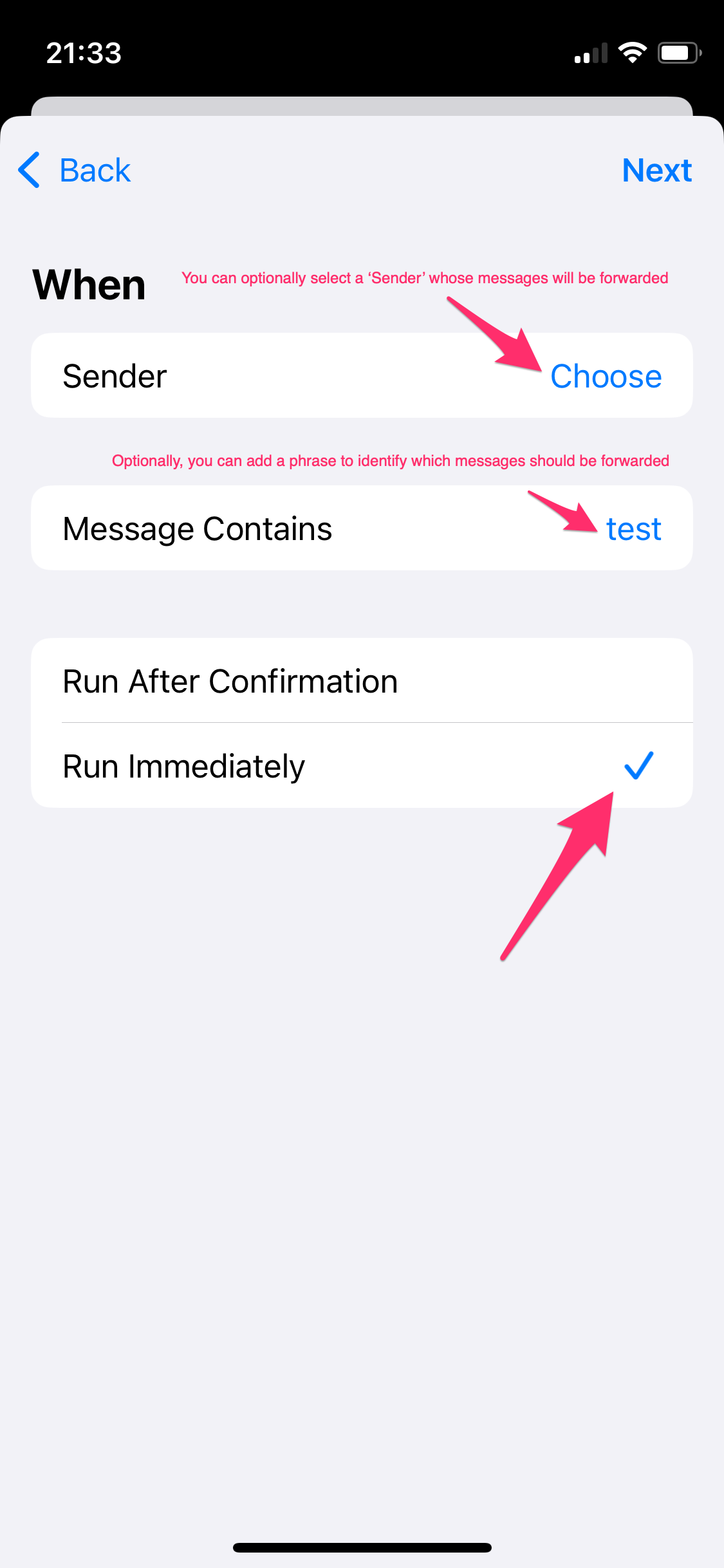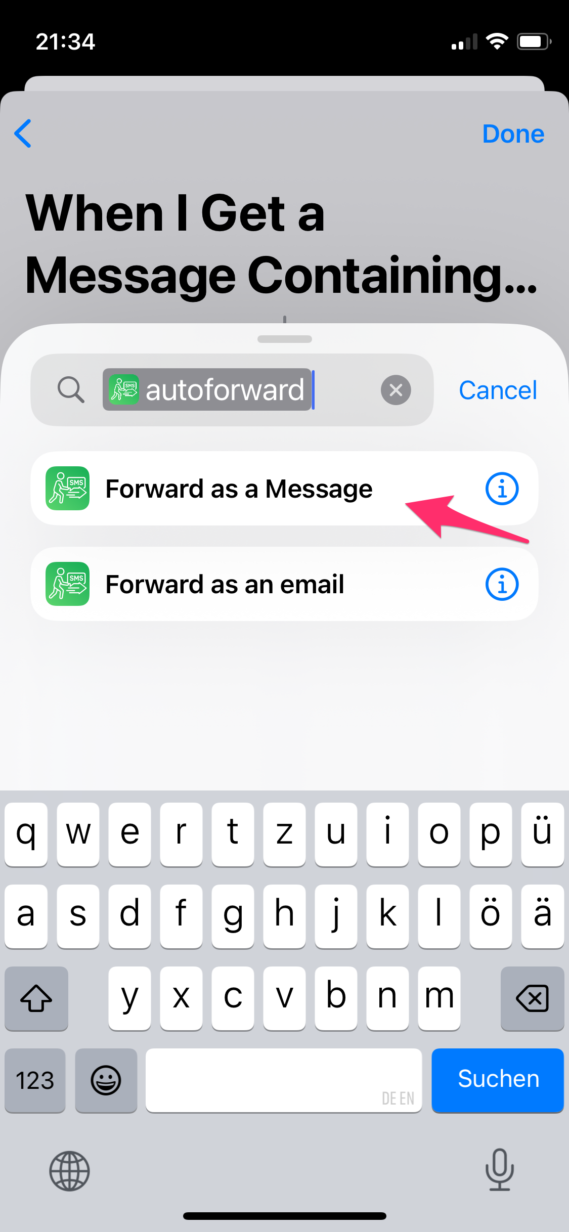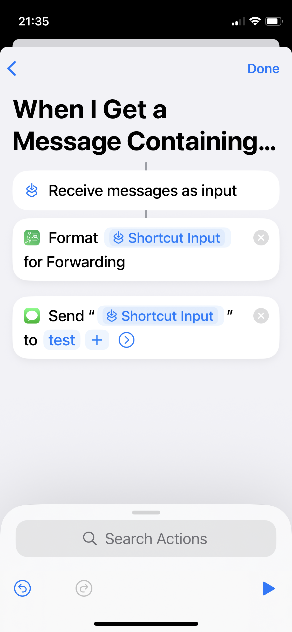 This guide will walk you through setting up SMS forwarding directly via SMS or iMessage messages using the shortcut feature of the autoforward app.